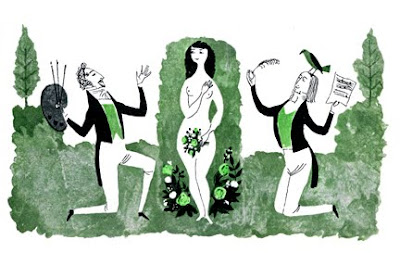 It's almost Valentine's Day! I have for you today, "The Fireside Book of Love Songs" with pictures by my favorite illustrator duo of Alice and Martin Provensen. The book was published in 1954 and has some great full color as well as 2 color illustrations. And some are pretty racy for 1954!