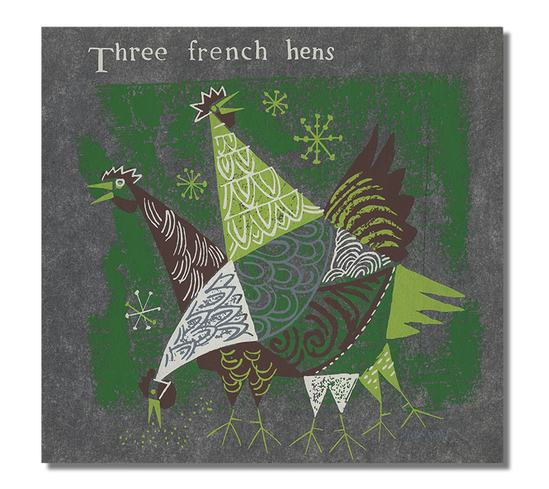 One of my favorite children's book illustrators are the husband-wife team of Martin and Alice Provensen. They also did a wonderful set of screen printed Christmas cards illustrating the 12 Days of Christmas. The cards were done in the 1960's and I've been looking for them to purchase for a number of years. This year, I got (half) lucky. Etsy seller Finds of the Attic had 6 of the cards for sale. Now, to find the rest of the series!
